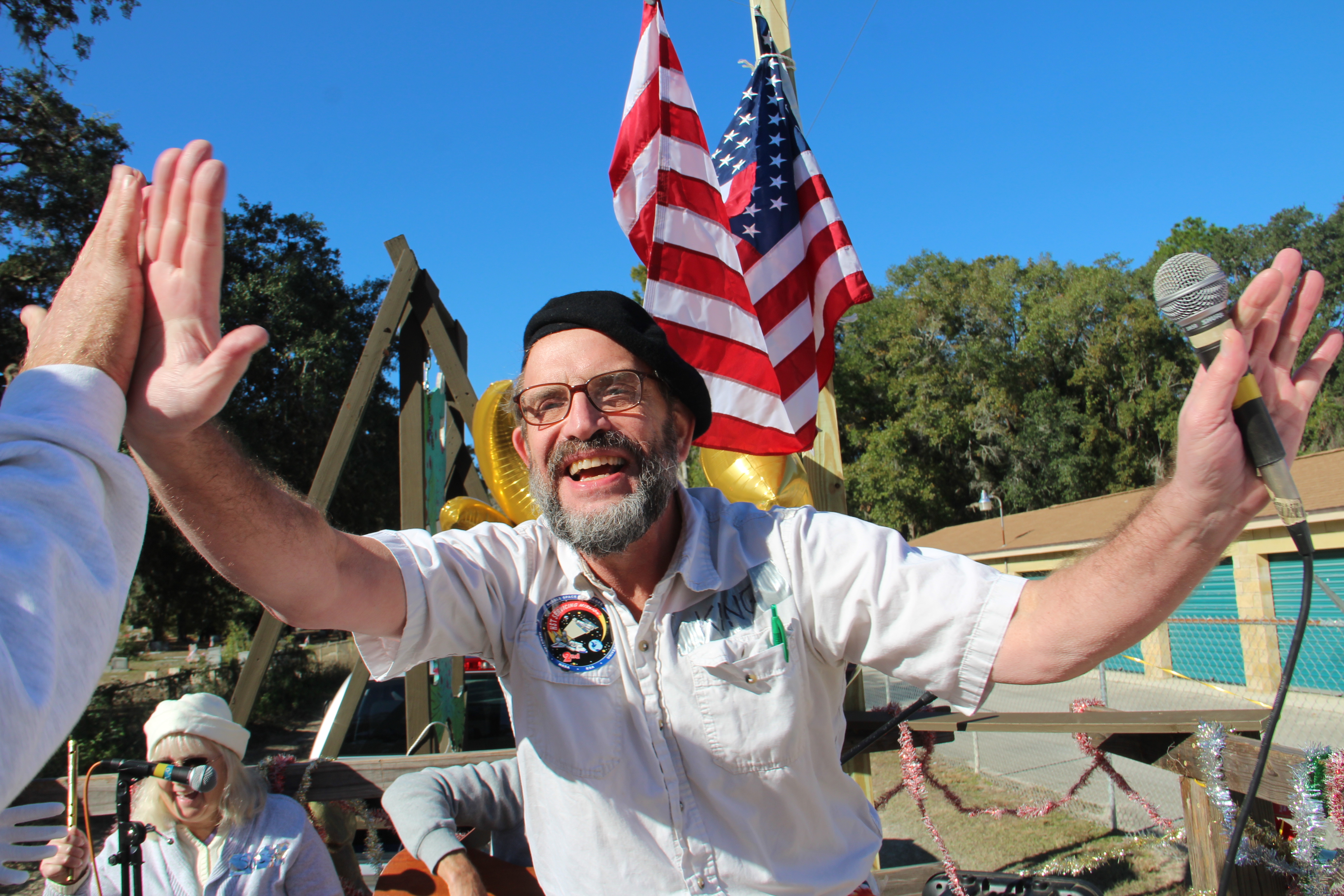 The float-judges give one award in each of four categories: Our float, Dancing Fish of Lake Santa Fe, was Best Entry Overall for 2016.